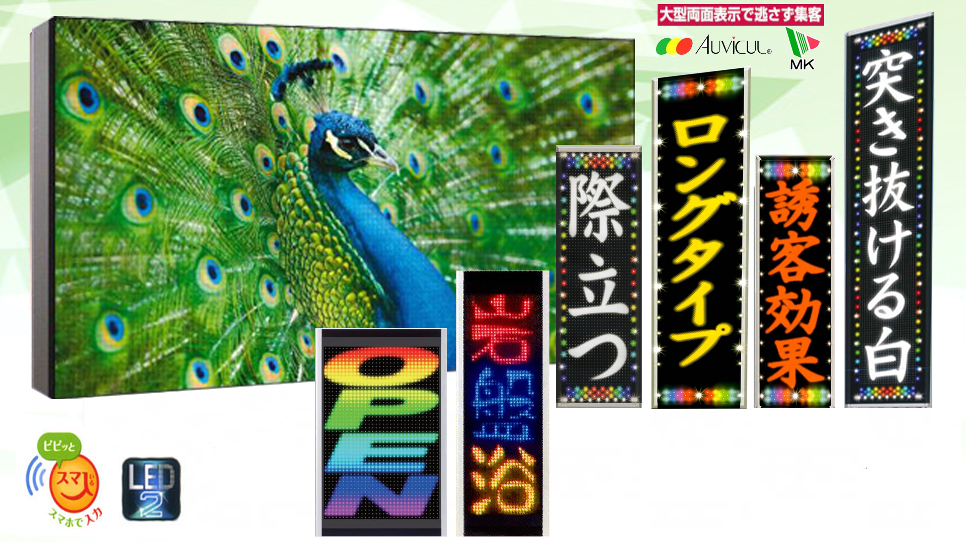 高輝度LEDを使用しているので日中でも鮮やかです。